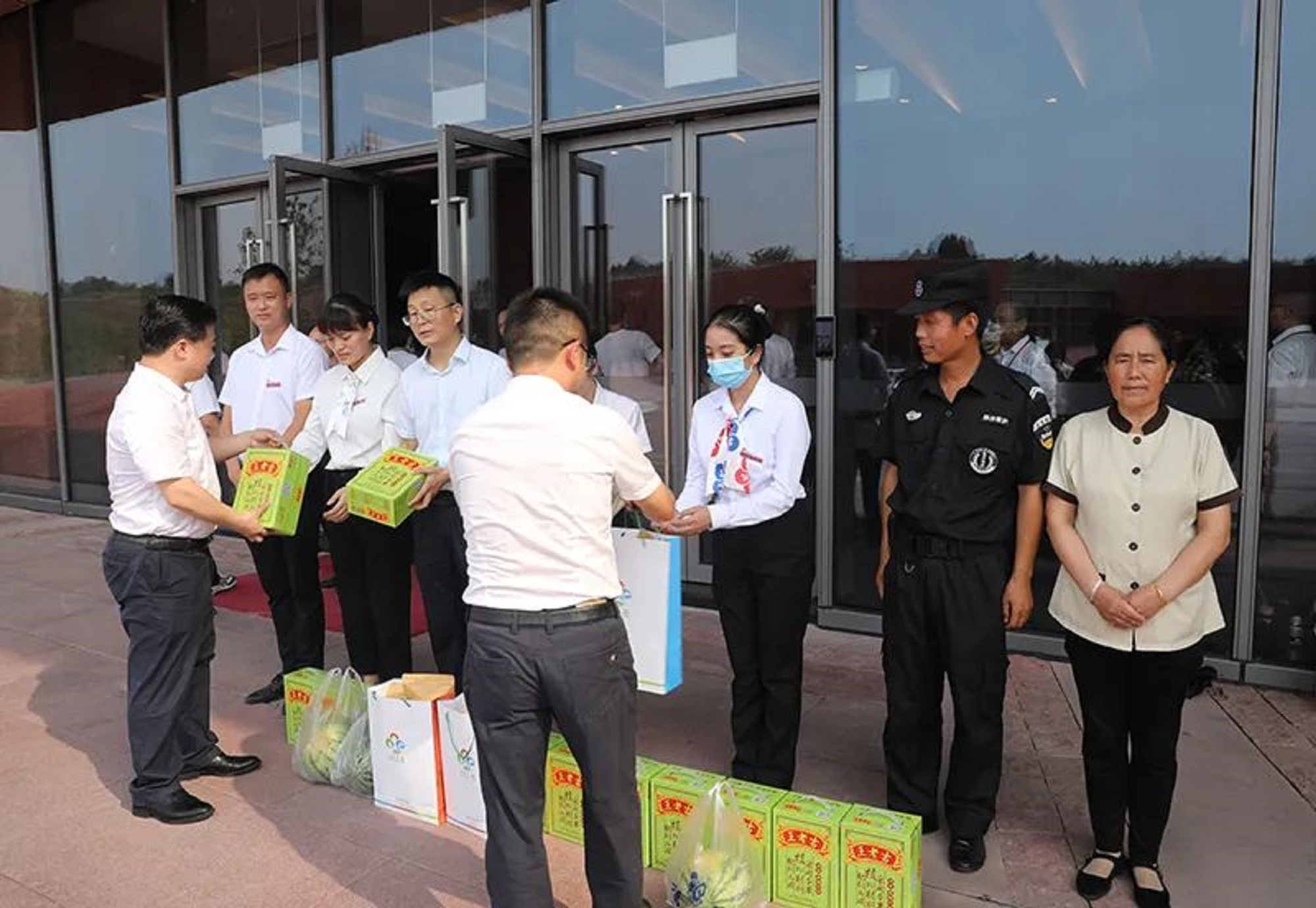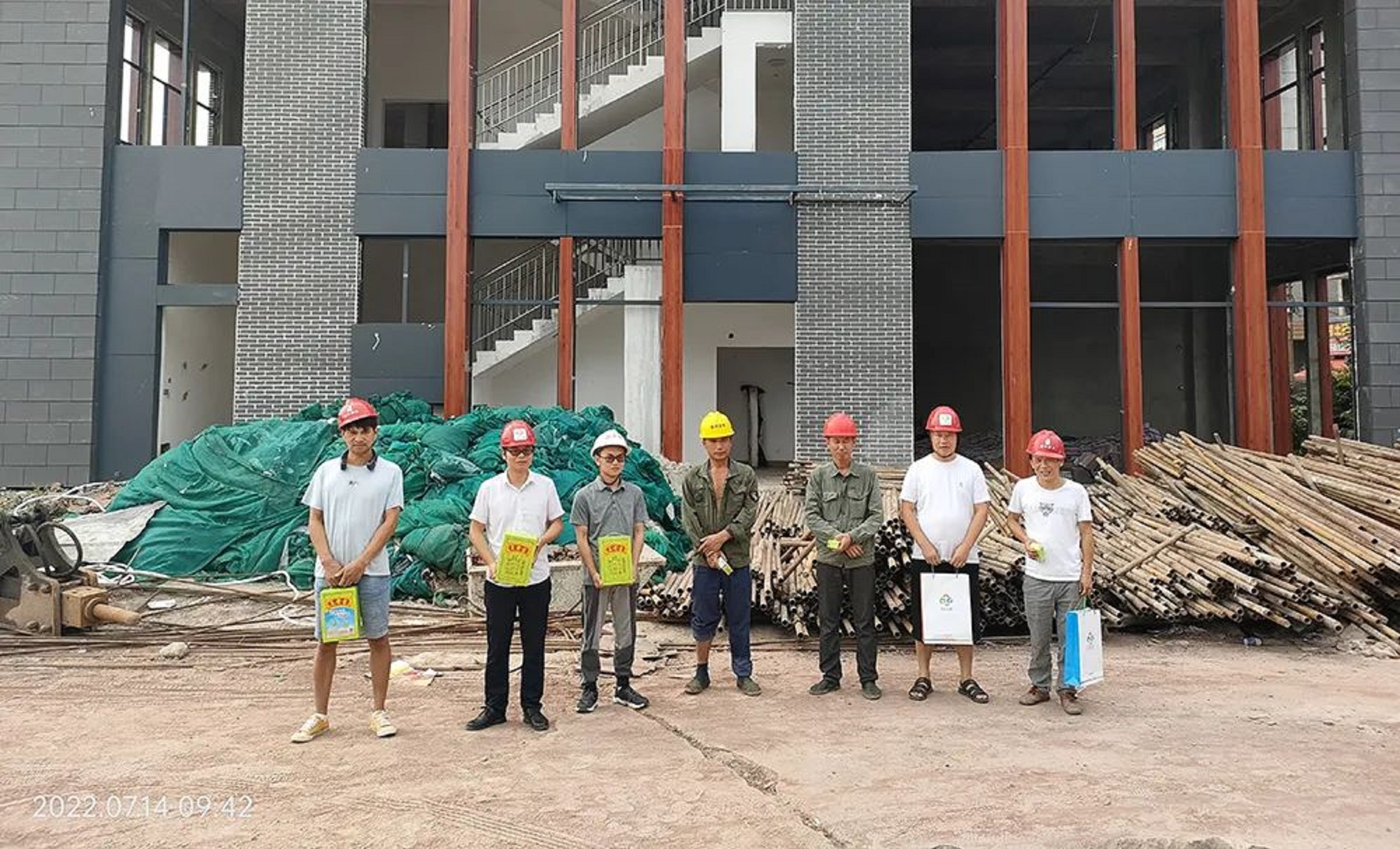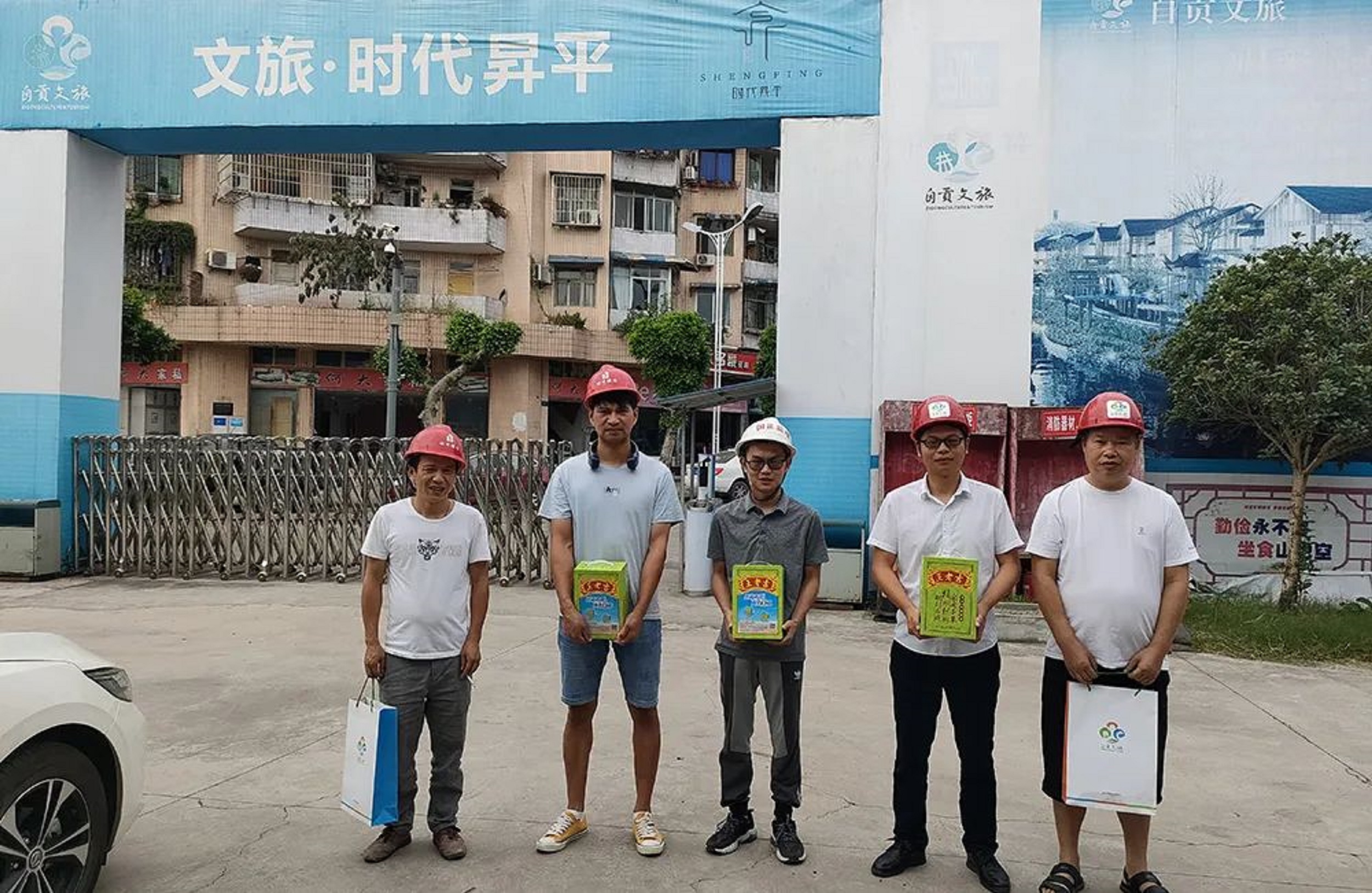 “大家辛苦了!天氣炎熱,大家一定要注意勞逸結(jié)合,預(yù)防中暑?!边B日來我市持續(xù)高溫天氣,為多個(gè)項(xiàng)目帶來了不小的考驗(yàn)。7月13日,自貢文旅投工會組織開展了“ 奮進(jìn)新征程 夏日送清涼”慰問活動(dòng)。一大早,公司黨總支書記、董事長宋青山,總經(jīng)理聯(lián)系人王國強(qiáng)就來到江姐故里紅色教育基地,為一線職工送去夏日的關(guān)懷。