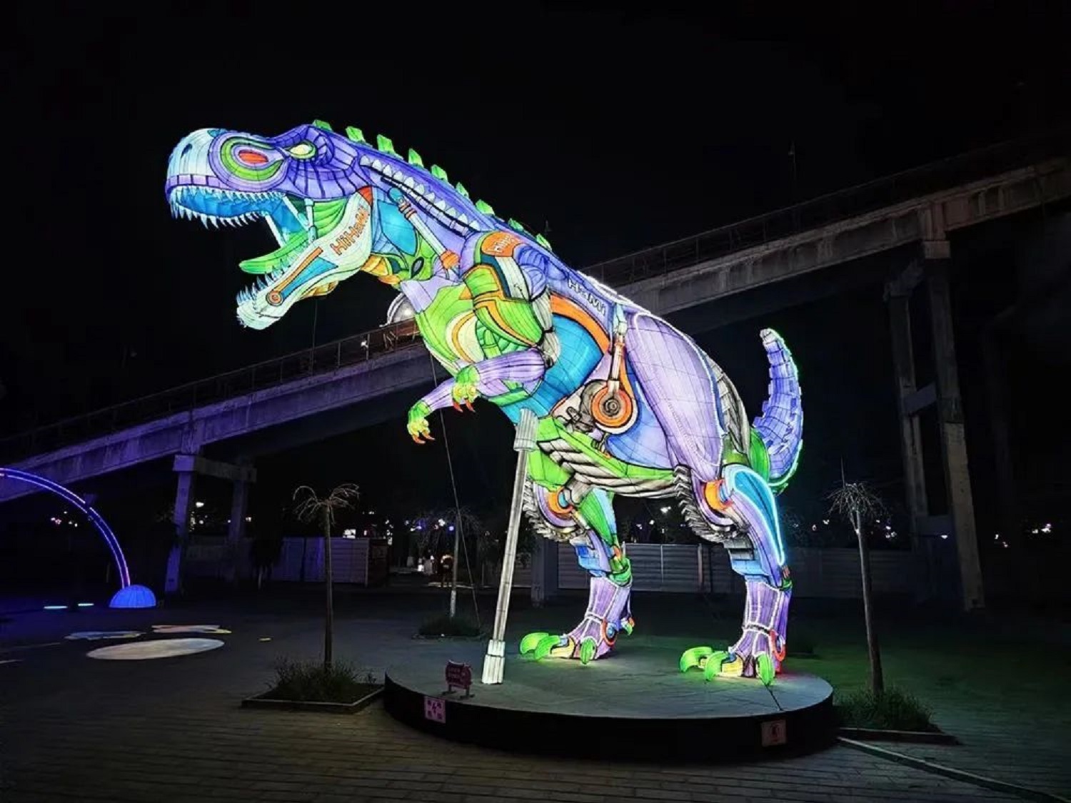 不僅如此,現(xiàn)場還加入了VR游戲、仿真恐龍、體感裝置、文創(chuàng)小店等設(shè)施設(shè)備,將為游客帶來一場集游覽觀光、互動打卡、消費(fèi)娛樂為一體的彩燈文旅盛宴。