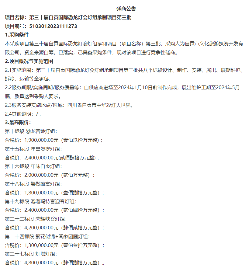 第三十屆自貢國際恐龍燈會燈組承制項目第三批