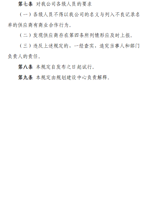 關(guān)于禁止“列入不良記錄名單供應(yīng)商”進(jìn)入公司的規(guī)定