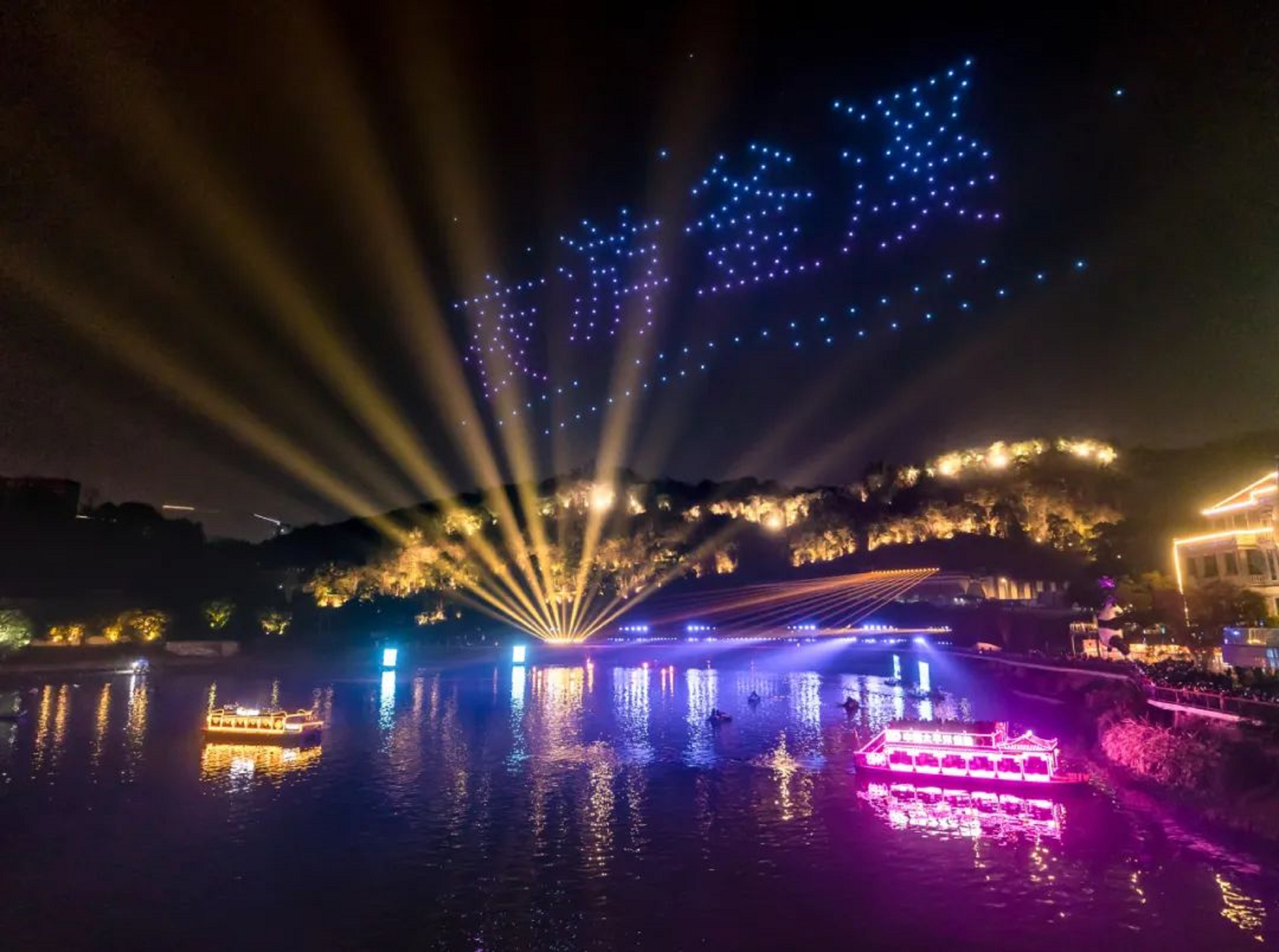 品質是項目之魂。今年初,根據(jù)我市建設釜溪河鹽文化長廊的總體規(guī)劃,途觀公司以自貢井鹽文化發(fā)展時間為線索,串聯(lián)毛家壩碼頭至自流井老街沿河兩岸的彩燈和光影秀,新增《千年鹽都》等7個燈組,新設《梅澤逐鹿》等7個光影秀和投影秀,對東興寺大橋、水涯居大橋、善后橋進行再亮化,全新打造“一序七幕二十八景”的井鹽文化主題夜游場景,依次呈現(xiàn)自貢因鹽而興、以鹽聚人的歷史。營收是管理之本。在不斷提升項目品質和內涵的基礎上,途觀公司不斷深化并拓寬服務范疇,持續(xù)優(yōu)化與提升服務品質,從拓展客流渠道、提升二次消費、改善服務和開展研學活動四個方向開展工作: