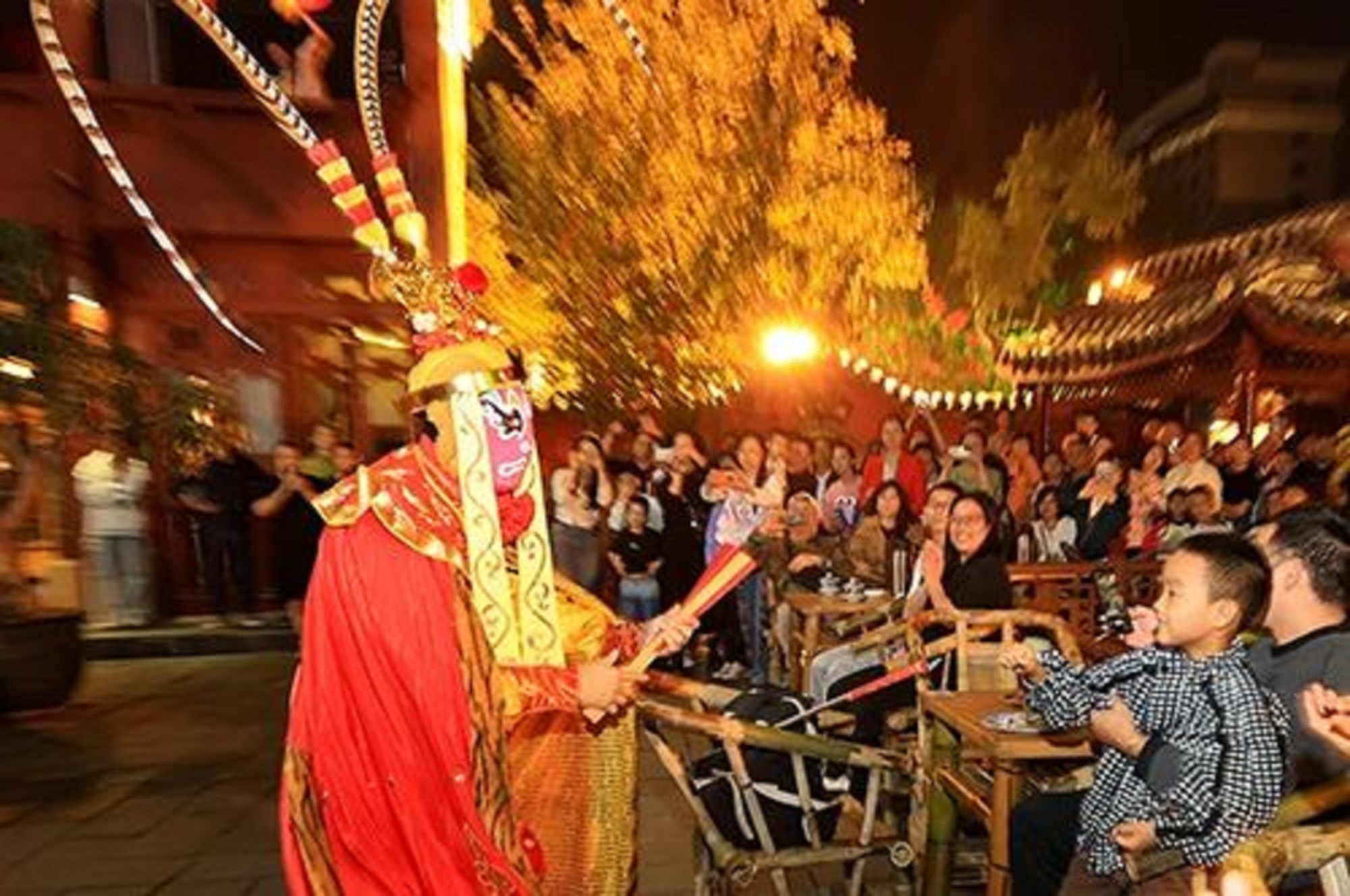 水中熠熠生輝,陸上精彩紛呈?!耙褂胃边€與王爺廟“攜手”推出演藝專班,開展水岸聯(lián)動。在王爺廟打造常態(tài)化消費場景,周末舉辦春茶品鑒會、扎染體驗、川劇變臉、長嘴銅壺技藝展示等活動。此外,還有豐富的鹽都小吃和自貢特色禮物,讓游客感受并帶走“最自貢”的傳統(tǒng)文化。