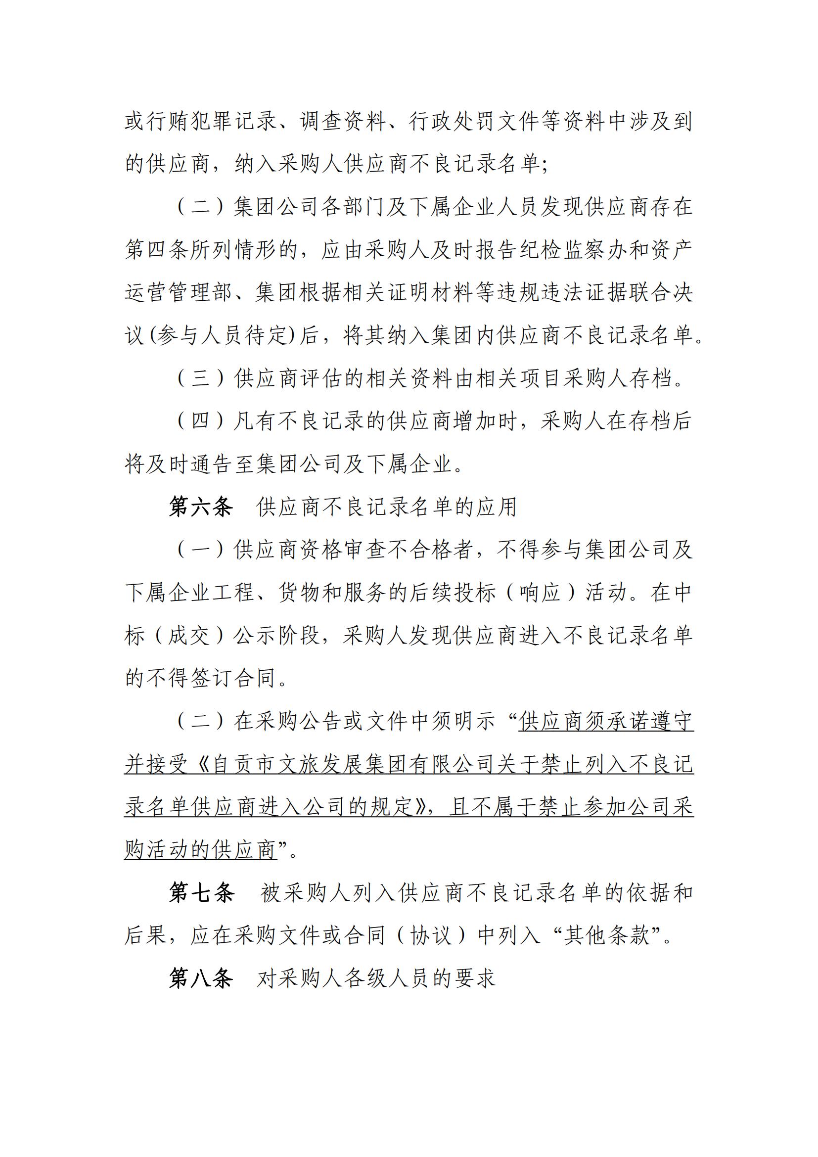 自貢市文旅發(fā)展集團有限公司 關(guān)于禁止“列入不良記錄名單供應(yīng)商” 進入公司的規(guī)定
